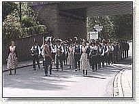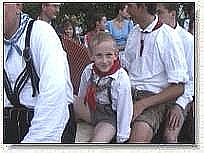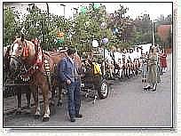 Dicht gefolgt - na, ja einige Gemeinderäte und Vereinsobermeier (so wie ich!) sind dazwischen - von den Kerwabuam und Maderln, die nicht minder stimmgewaltig sind! "Die Kerwa is kumma, die Kerwa is dou..." |