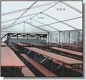 Doch zunächst mal ein Blick ins bereits fertig eingerichtete Zelt. Von dem eigentlich wunderbaren Ambiente des Schmidtbauernhofes ist wirklich nichts zu sehen ... |