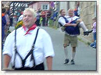 | Einer - warum weis man nicht genau - wurde von seinem Kärwamadla an den Füßen gepackt und los gings. | ![]() |