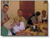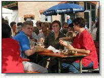 Nach dem Frühschoppen gab es noch ein Abschiedsessen für unsere Sarner Freunde im Gasthof Ludwigshöhe, das unser Bürgermeister sichtlich genoß... |