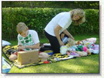 Während es Vormittags die Wettkämpfe gab, war Nachmittags Spiel und Spaß angesagt. Wie hier zum Beispiel das Bemalen von T-Shirts, was sichtlich Spaß machte! |