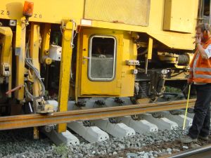 Aber halt! Erstmal den Zug abwarten und dann konnte ich mich davon überzeugen, dass sich dahinter eine durchaus geräumige Kabine verbirgt, von der aus das Verlegen der neuen Schwellen gesteuert wird: