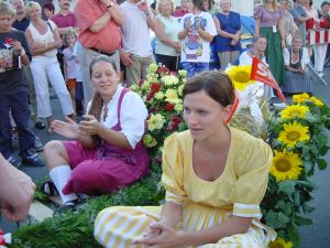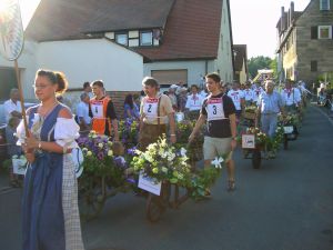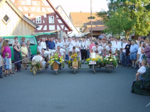 Es war wie immer ein tolls Bild, als die gescmückten Schubkarren mit dem Festzug einfuhren: