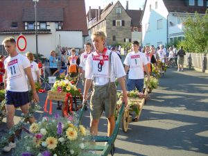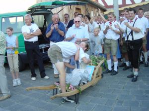 Natürlich war, wie immer, der Höhepunkt, das weniger sportliche, aber schnellere Rennen das derKerwabuam mit den Madla! (Kerwamadla fallen doch weniger oft vom Schubkarren als Hölzla) Hier einfach ein paar Bilder ohne Worte: