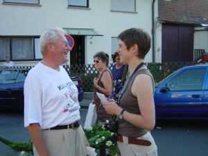 Unser Dieter mußte noch ein längeres Interview über sich ergehen lassen, das unser "Museumsschorsch" mit einer Sonderfahrt auf dem Schubkarren quitierte. (Begleitet von Herrn Keller.)