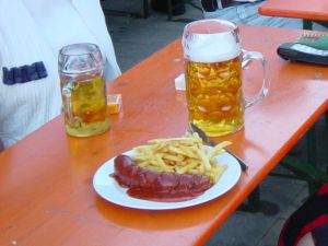 Ich hatte schon öfter die Salzer der Fischbude gelobt, nun ist es mal an der Reihe, auch das Essen des Festwirtes zu loben! Das fällt mir wirklich leicht, denn diese Currywurst schmeckte einfach hervorragend!