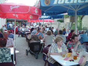 Im vollbesetzem Gastgarten vom Schwana herrschte sowohl bei den Kerwabuam- und Madla, wie auch bei dem restlichen Publikum eine tolle Stimmung!