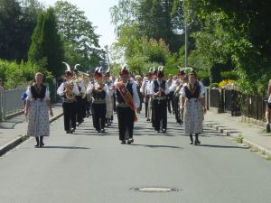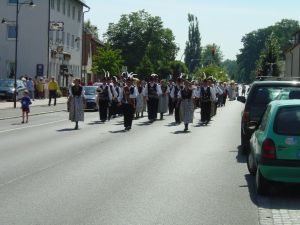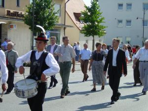 ...kurzzeitig die B14 blockerend zum Festplatz. Es war wieder ein eindrucksvoller Festzug! Erst die Musik, dann die Prominenz (Unsere Bürgermeister sichtlich bester Laune)...