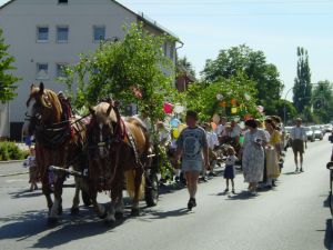 ...gefolgt vom eigentlichem Hautdarsteller des Festzuges, dem Baum mit den Kerwabuam und Maderln.