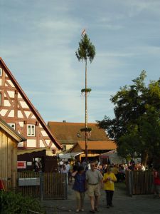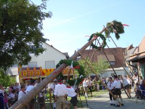 Unser Schwarzenfritzla, Chef der Kerwabuam A.D. beobachtete das Aufstellen mit sichtlichem Interesse!