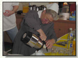 | ...Kaffeetrinken und Kuchenessen im Gemeindesaal. Hier war unter anderem auch unsere allzeit beliebte Schwester Maria im vollen Einsatz. | ![]() |