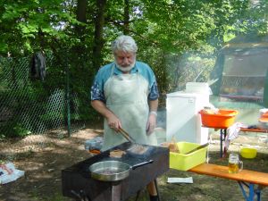 Für das Leibliche Wohl der Gäste sorgte das altbewährte Team, an der Verkaufsttheke, am Zapfhahn, am Grill (unser "Osterhasi") und später auch an der Kuchentheke.