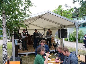 So, und nicht anders, sehen Blinde die Welt, und jeder Gast war eingeladen, bei einer Tasse Kaffee, dieses Feeling zu erleben... Inzwischen wärmte die Band das Publikum mit heißen Dixieklängen auf...