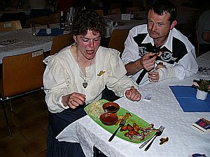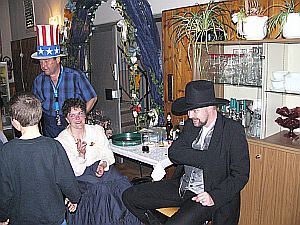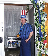 Für das leibliche Wohl sorgte unser "Sam" Bieberbach mit seinem "American Food", das, wie man hier sieht hervorragend schmeckte! Und so ist es auch kein Wunder, dass unser Jürgen mehr als zufrieden unter seinem Hut hervervorlachte.