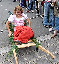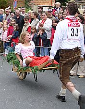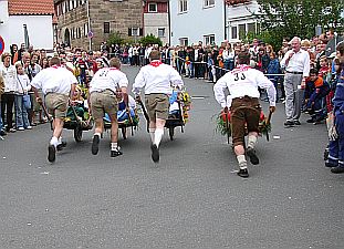 ...gewonnen und verloren. Aber Spaß gemacht hat es allemal! Und auch heuer war der Höhepunkt wieder das Rennen der Kerwaboum mid den Maderln. Letztere fallen zwar nicht so leicht runter wie die Hölzla, aber sie sind doch etwas schwerer!
