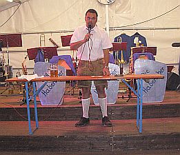 Es war mal wieder soweit, die Kerwa neigte sich dem Ende zu. Aber nicht, ohne sich mit einem zünftigen Schubkarrenrennen zu verabschieden! Aber bevor ich mit dem Bericht beginne, möchte ich unsere "Stadionsprecher" vorstellen: Dieter in der Zielgeraden und Fredi in der Aussenstelle am Schloßhof!