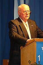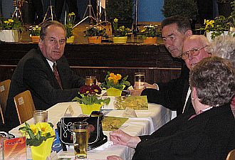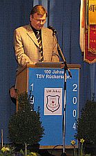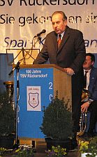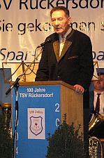 ...der die angenehme Aufgabe hatte, eine wirklich große Anzahl an Gratulanten auf die Bühne zu bitten. So manches interessantes gab es zu hören, und so mancher "Briefumschlag" wurde überreicht. Die Reihe startete mit dem Landrat Herrn Helmut Reich und unserem Bürgermeister, Herrn Werner Pleyer...