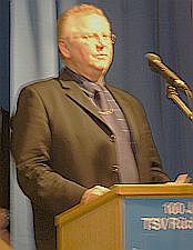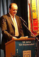 ...die dann, sicherlich vom Stargast des Abends, Herrn Michael A. Roth abgelöst wurden. Er hatte auch ein ganz besonderes Geschenk dabei: Ein Fußballspiel der Mannschaft des TSV gegen den Club!