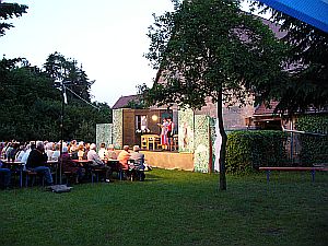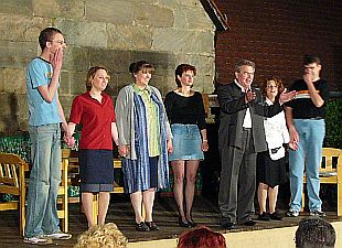 Nachtrag:Eine Woche später, bei der Wiederholung, die diesmal wie geplant am Samstag stattfand, hatte sich die Stimme unserer Daggi (Dagmar Pirner) wieder erholt und so konnte sie spielen (Natürlich ohne Textbuch!)