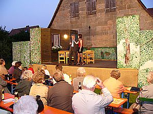 Zum zweiten Mal wurde das Frühjahrstheater nicht im Bürgersaal, sondern im wunderschönen Schlosshof gegeben. Auch wenn es das Wetter nicht einfach machte, es war ein voller Erfolg!