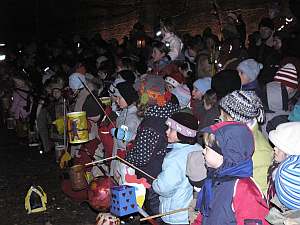 Nach dem Singen in der Waldschule kamen die Kinder mit ihren Laternen an. Und, begleitet vom "XanXverein"...
