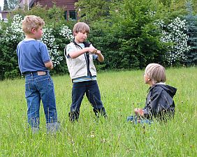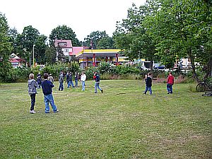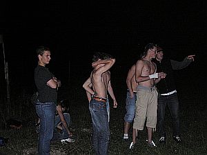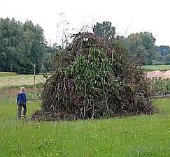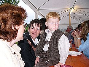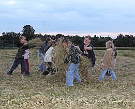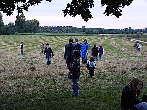 Die Wartezeit bis zum Einbruch der Dunkelheit vertrieben sich die Erwachsenen mit Musik, Bier und Bratwürsten, während die Kinder auf den umliegenden Wiesen herumtollten. Was ist schöner als viel Heu zum Spielen, da vergisst man selbst seinen Gameboy!