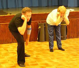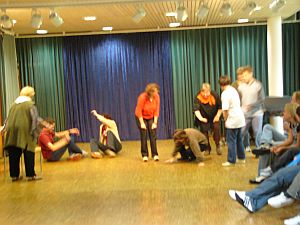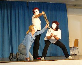 Am Sonntag ging es weiter, bei den Bühnenbauern, bei den Pantomimen oder Schaukämpfern, und auch die Spontanspieler legten sich ins Zeug bei den letzten Proben. Und dann war es soweit, die Abschlussveranstaltung mit den Ergebnissen des Workshops begann. Hier nur ein paar Bilder ohne Kommentar::