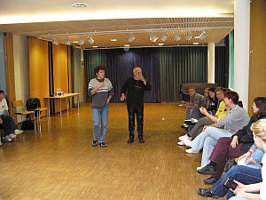Ein Haus weiter im Blindi lehrte ein Fachmann mit Übersetzer die Kunst des spontanen Theaters: