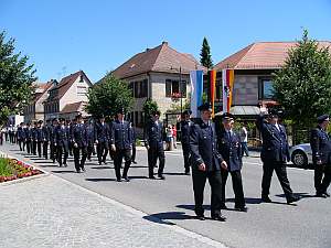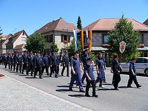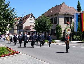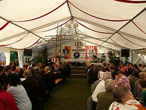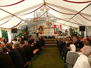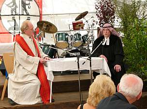 Danach ging es mit einem kleinen Festzug ins Festzelt, das inzwischen mittels Feuerwehrleitern zur Kirche umfunktioniert wurde.