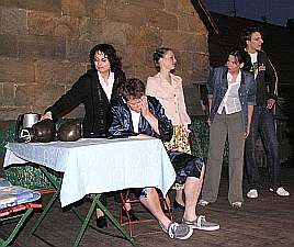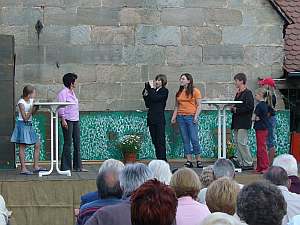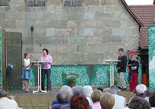 Zum dritten Mal fand das Frühjahrstheater im Schlossgarten statt. Heuer wurden der Einakter "Talk im Schloßhof" und der Dreiakter "Der Entenkrieg von Rückersdorf" gegeben.