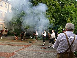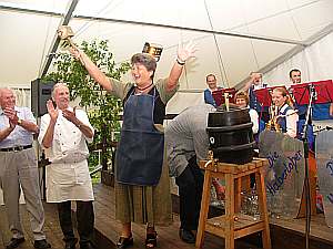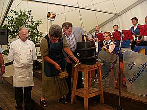A bisserl nervös wars scho unser Bürgermasdre... aber mit der Fachkundigen Anleidung von unserm Fesdwird James und unserm Braumasder, Herrn Vogel, hod der Bieransschdiech klasse glabbt!