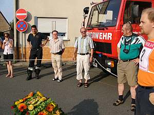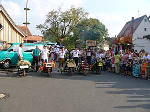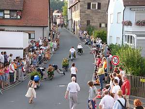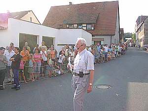 Dolle Renna hads gehm, und des schönst Bloods hads am Feierwehrhaudo ghabt, do hosd fasd alles gsehn. (Es gab tolle Rennen, und der beste Platz war auf dem Feuerwehrauto, da hatte man so richtig den Überblick.)