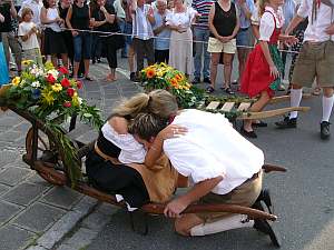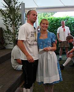 So, eds bin i ferdi mid meim Berichd üba die Kerwa, vielleicht solld i euch no des schöne Bildla vom Siegerbährla zeign, des des Ausdanzn gwunna had, bevor i endli a Ruh geb: (So, das war mein Bericht von der Kirchweih 2006. Aber zum Abschluß möchte ich Ihnen noch dieses schöne Bild zeigen, von dem Paar, das das Austanzen gewann:)