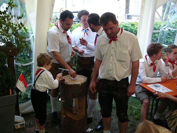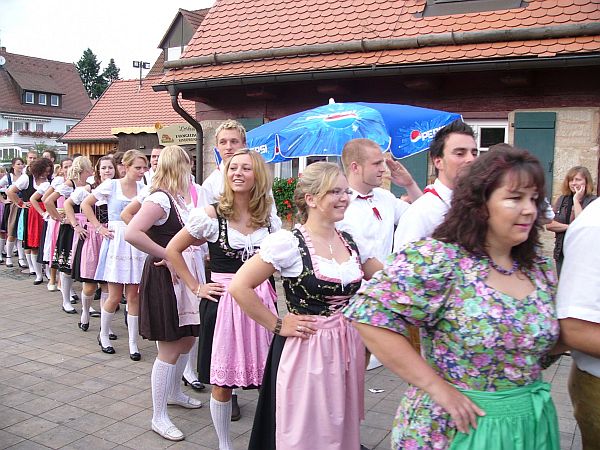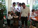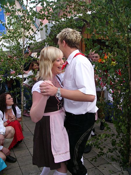 Irgendwie war der Wecker nicht ganz richtig eingestellt. Als unseren Kerwamaderln und buam schon langsan die Liedla auszugehen drohten, griff Dieter zur "Notbremse". Und schon war das Siegerpaar gefunden.